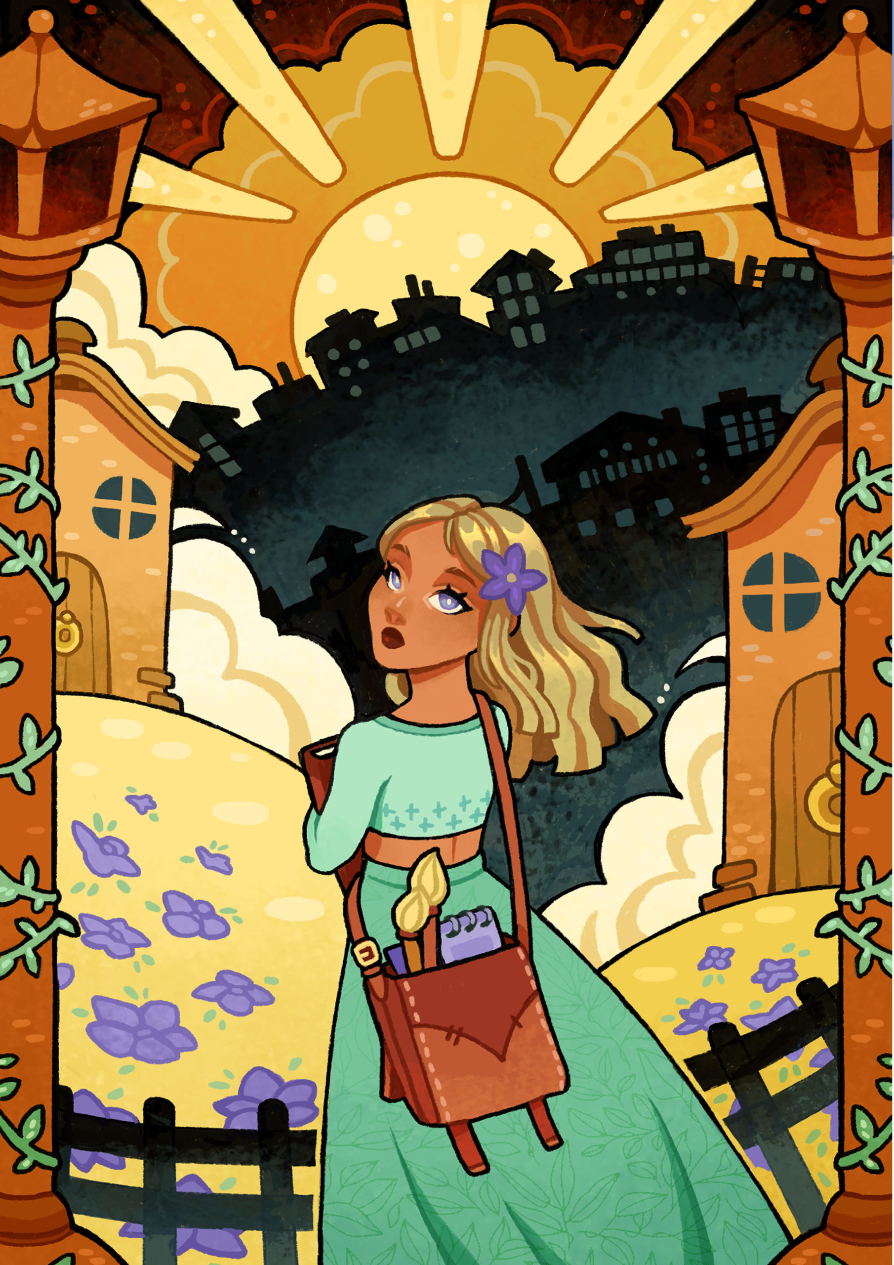 Sara Esquerrà és il·lustradora i artista conceptual 2D de Girona. L’apassionen les històries fantàstiques, els personatges entranyables i els mons lluminosos amb un toc d’humor.