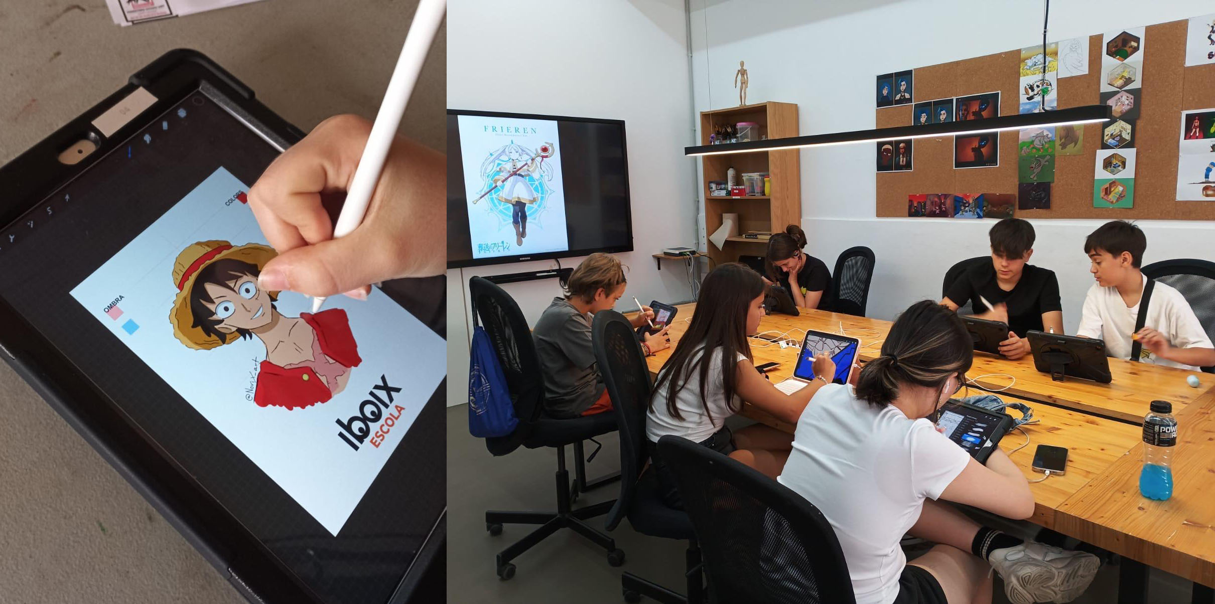 ¿Tienes entre 10 y 15 años y te apasiona dibujar? ¿Te gusta hacer cómics, pintar retratos, cuentos o diseñar personajes? En el taller de dibujo trabajarás con nuestros iPad y el programa Procreate de Apple. Aprenderás de la mano de profesionales de la ilustración. Además de hacer amigxs, potenciarás tu creatividad y mejorarás tu técnica tanto del dibujo a línea como en el sombreado y el color. Semana tras semana harás distintos proyectos y explorarás estilos como Manga, Disney, Realista, Cartoon, e incluso te enseñaremos a crear pequeñas animaciones con tus dibujos. Y si además quieres mejorar y practicar tu inglés, puedes hacerlo en las clases de los viernes, donde hablamos en inglés mientras dibujamos. ¡Learn to draw but in English!